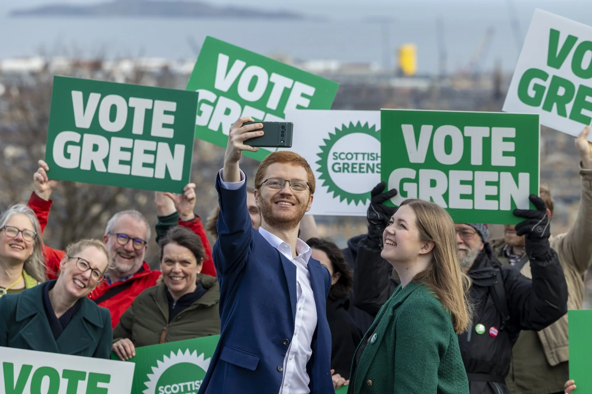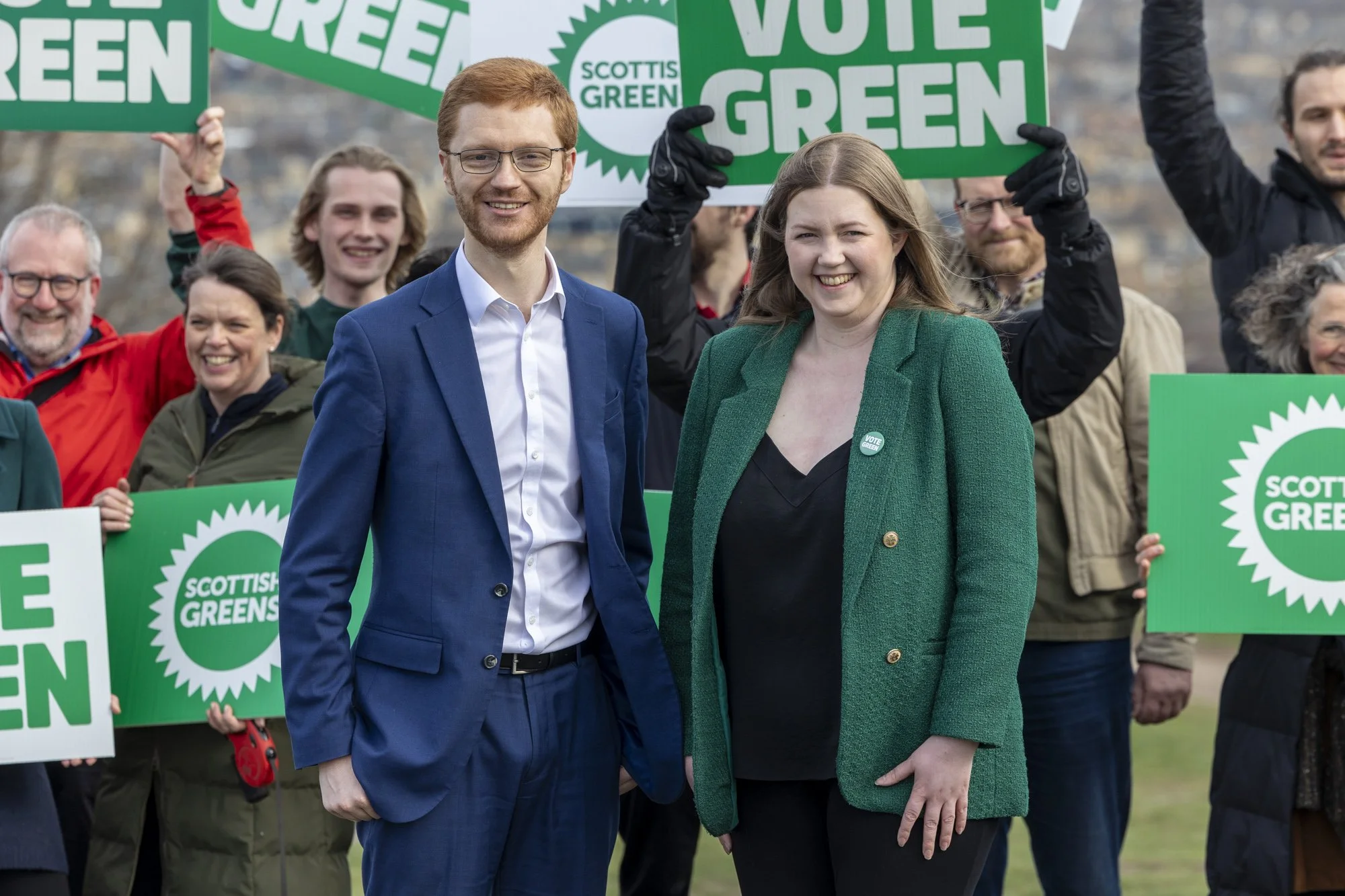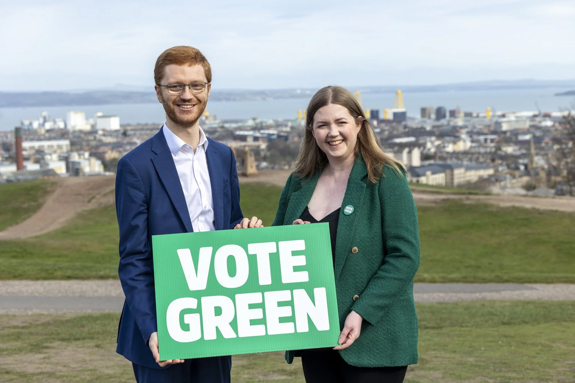 Scottish Greens co-leaders, Gillian Mackay, Ross Greer, start their Scottish Election campaign on Calton Hill in Edinburgh